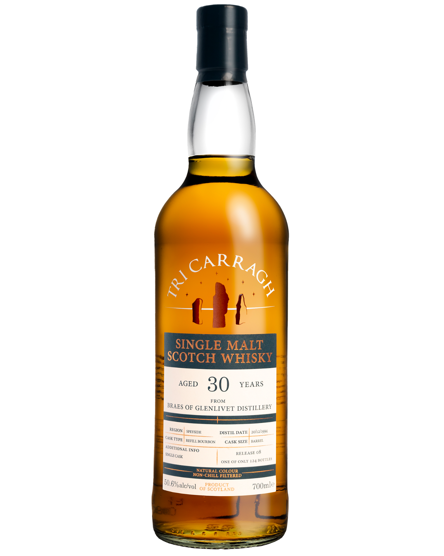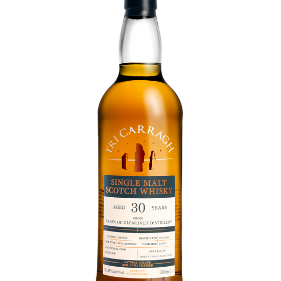 Tri Carragh founder Ryan describes this expression as "nectar of the gods." The distillation date places this spirit in the final year before the distillery underwent its name change from Braes of Glenlivet to Braeval, making bottlings under the original name increasingly rare. The long maturation has produced a classic Speyside profile, bursting with fruit and sweetness that carries through from nose to finish.